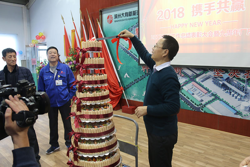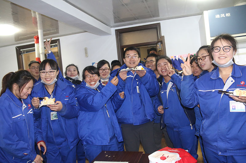 與生產一線職工分享廠慶蛋糕